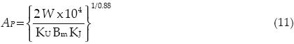 Un factor básico en el diseño de inductores es el producto de áreas AP, el cual corresponde al área de la ventana, multiplicada por el área de la sección transversal del núcleo. Para laminación EI, AP se relaciona con la energía W que debe manejar el inductor a través de la siguiente relación: