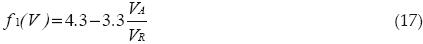Sean VA el voltaje aplicado al capacitor y VR el voltaje máximo permitido. El término f1 considera el efecto del esfuerzo del voltaje aplicado al capacitor y está dado por:
