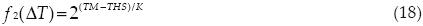 A su vez, f2 es función del incremento en la temperatura interna y se expresa como: