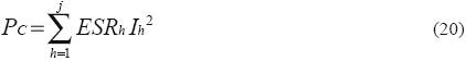 El contenido armónico de la corriente ic depende de la tensión trifásica aplicada al rectificador y de la modulación del inversor. Si se conocen las amplitudes de las armónicas Ih y los valores ESRh a las mismas frecuencias, la potencia Pc se calcula con: