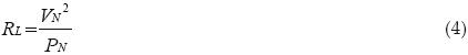 El circuito equivalente se muestra en la figura 2; RF modela las pérdidas en el filtro y RL modela, de manera simplificada, al motor. La simplificación implica que sólo se considera la potencia promedio demandada por el motor operando en régimen permanente (suponiendo un inversor sin pérdidas). RL depende de la resistencia del rotor y puede aproximarse con: