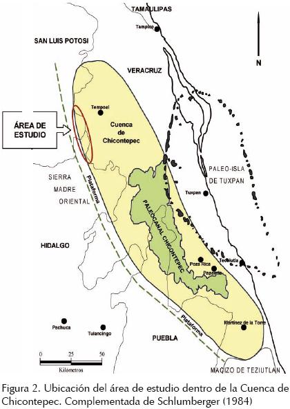 La Cuenca de Chicontepec se sitúa en la porción centrooriente de la República Mexicana sobre la planicie costera del Golfo de México; su eje axial tiene una longitud de 250 km, orientado NWSE y cubre una superficie oval de 11, 300 km2 con una anchura promedio de unos 60 km. Comprende principalmente a dos Provincias Fisiográficas: la de la Llanura Costera del Golfo Norte y subprovincia de las llanuras y lomeríos, así como la de la Sierra Madre Oriental y subprovincia del Carso Huasteco (figura 1).