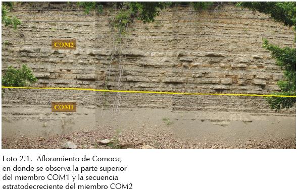 Los miembros COM1 y COM2 son depósitos estratigráficos cíclicos sobrepuestos, presentando ambos una asociación estratodecreciente. Por otro lado, el COM2 presenta evidencias de bioturbación con diversos grados de intensidad, lo cual no se observa en el miembro infrayacente COM1.