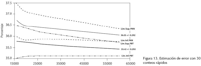 En la figura 13 se comprueba la obtención de un conteo rápido, observando que a partir de 60,519 los intervalos de confianza no se cruzan.
