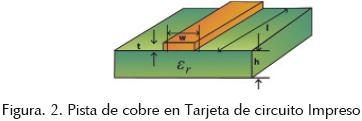 La capacitancia mutua entre pistas paralelas en una tarjeta de circuito impreso se calcula por (Gupta et al., 1996):