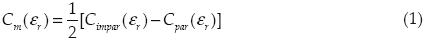 para el modo impar, la capacitancia se calcula con la siguiente expresión: