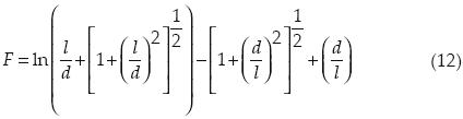 donde l es la longitud del conductor en centímetros. F es el parámetro de la inductancia mutua, el cual se puede calcular utilizando la siguiente fórmula:
