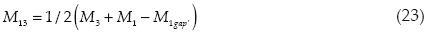 Las inductancias mutuas negativas para el circuito de la figura 4 se resuelven utilizando las siguientes expresiones: