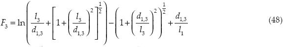 Si la longitud de l1 y l2 son las mismas (l1 = l2), se utiliza la ecuación (13d). Cada término de inductancia mutua en la ecuación 13 se calcula usando las ecuaciones 11 y 12.