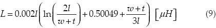 La inductancia de un conductor de sección rectangular como se muestra en la figura 2, se puede calcular utilizando la siguiente ecuación (9):