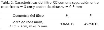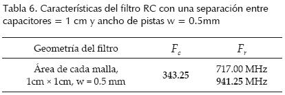Analizando los resultados se puede observar que si se consideran los efectos parásitos capacitivos e inductivos, que presentan las pistas de las tarjetas de circuito impreso, se pueden hacer aproximaciones cercanas a los resultados que se presentan en la parte experimental, ya que esos efectos influyen de manera importante en el comportamiento de cualquier diseño electrónico implementado en las TCI, los cuales deben ser considerados. Es importante mencionar que el programa comercial Serenade no revela cuáles son las consideraciones que hace para obtener las gráficas en frecuencia al utilizar las pistas de circuito impreso, como se mostró en el circuito de la figura 18; sin embargo, en la tabla 10 se observa que los resultados obtenidos con este programa presentan valores diferentes a los que se obtuvieron en forma experimental, usando el programa MatLab. Por ésta razón es importante considerar los efectos parásitos descritos para obtener una mejor aproximación a la respuesta real del sistema. Este trabajo además de dar una mejor aproximación a los efectos parásitos capacitivos e inductivos que se producen debido a la geometría de las pistas utilizadas en el filtro π, nos demuestra que en cualquier diseño electrónico se deben considerar esos efectos para darle una solución antes de implementarlo en una TCI. Se puede observar que entre menor longitud y grosor de las pistas, menor inductancia propia va a existir, evitando que la frecuencia de corte se aleje de la frecuencia calculada; de igual manera si el área que se forma debido a las pistas es menor, la inductancia mutua por consecuencia va a presentar un valor inferior. La capacitancia mutua que se forma entre las pistas, es proporcional a la separación de las mismas, por lo tanto, ésta debe evitarse de forma primordial porque con el intercambio de energía de los capacitores e inductores se producen frecuencias resonantes que pueden ocurrir en un intervalo de frecuencia no deseado y hacer que el diseño electrónico sea vulnerable a presentar problemas. Con base en este trabajo se ha concluido de manera importante que se pueden realizar filtros utilizando las pistas de las TCI sin usar elementos resistivos ni capacitivos, solamente considerando los efectos parásitos capacitivos e inductivos variando la geometría de las pistas.