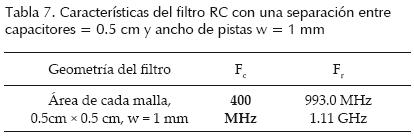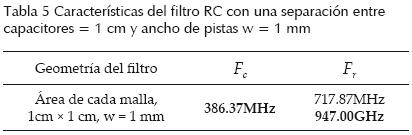 Se puede observar en la tabla 10 que existe una aproximación muy cercana a las mediciones experimentales, si se utiliza el programa realizado en Matlab, el cual considera los efectos inductivos y capacitivos; en cambio, el programa comercial Serenade presenta un mayor error en este caso. Es importante mencionar que la frecuencia de corte ideal es de 372.9MHz y las mediciones experimentales presentan una variación muy grande al cambiar las características físicas de las pistas de TCI, alejándose de la frecuencia de corte ideal causado por los efectos inductivos y capacitivos, que generalmente no se contemplan en el diseño de los sistemas electrónicos.