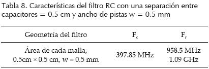 En la tabla 9 se observa que los valores de las inductancias y capacitancias tienen un valor significante, lo cual provoca un comportamiento del filtro ligeramente diferente al esperado, como se muestra en las siguientes secciones.