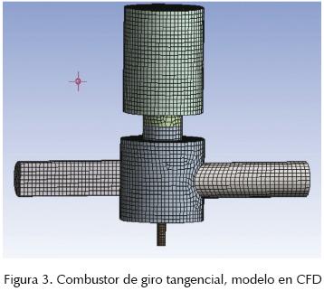 Los valores utilizados fueron 0.52 para A y 0.37 para CD, de acuerdo a lo recomendado por Zimmont et al. (1998) y Wilcox (1998), los cuales son adecuados para la mayoría de los casos de flamas premezcladas. Como en el experimento se usaron dos métodos de inyección. La simulación se elaboró usando el software FLUENT. Un análisis tridimensional se implementó para la obtención de datos (figura 3).