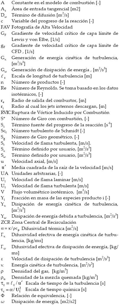ValeraMedina A., Syred N., Griffiths A. Central Recirculation Zone Analysis in a Tangential Swirl Burner, artículo submitido. Experiments in Fluids, junio de 2010. [ Links ]