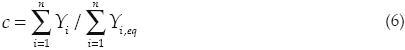 La variable de progreso de la reacción se define como la suma normalizada de las especies producto,