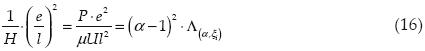 La figura 4 muestra los resultados iniciales de esta exploración, separándolos por tipos de microcojinetes: DivergentePlanoConvergente (DPC, 0 < α <1) y ConvergentePlanoDivergente (CPD, α > 1). A diferencia de los CPD, los DPC presentan un comportamiento muy sensible a pequeñas variaciones del parámetro a. Sin embargo, en estos últimos, se pueden alcanzar valores más altos del producto (h2/l)2/H.
