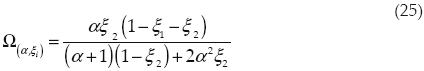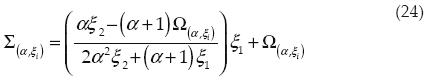 Para los grupos de ecuaciones presentados (ecuaciones 14 21), T(α,ζi) y Λ(α,ζi) son dos funciones adimensionales que combinan los aspectos geométricos de la película lubricante y de la textura del cojinete y dan cuenta del comportamiento exhibido por el sistema tribológico de estudio. Estas funciones se han construido con base en el parámetro de la película lubricante a y las fracciones espaciales asociadas al texturizado ζi.