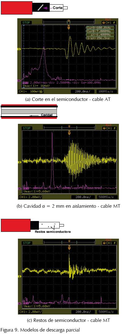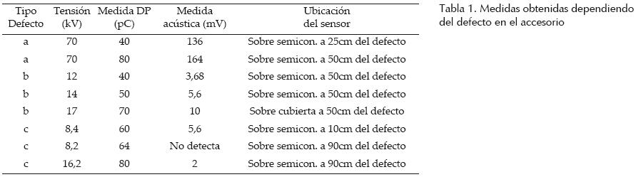 Con el fin de caracterizar cada una de las señales de DP, se utilizaron defectos típicos de cable o preparación de accesorios, como restos de material semiconductor, cortes en el semiconductor externo y huecos en el aislamiento, provocados durante la preparación del empalme, con el fin de obtener de manera artificial las descargas parciales. Estos defectos fueron realizados en dos tipos de cables, uno de ellos fue para alta tensión, de XLPE 76/132 kV 1x800 mm2 Al y el otro para media tensión, de XLPE 12/20 kV 1x240 mm2 Al.