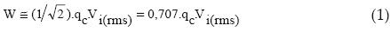 La energía que transfiere una descarga, en un defecto tipo cavidad, se puede calcular por la diferencia entre la energía almacenada antes y después de la descarga parcial. La magnitud de la energía liberada (W) en Joule, expresada en función del valor eficaz de la tensión de excitación de la descarga (Vi) en volts, a una carga eléctrica qc en Coulombs, que es transferida cuando se presenta una descarga en un defecto tipo cavidad se puede expresar como: