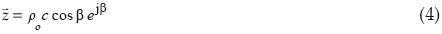 donde (ρo) es la densidad característica del material en kg/m3 y β el ángulo entre la dirección de la presión acústica y la velocidad de partícula en el material. β = 0 cuando la onda es plana.