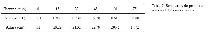 Los resultados de la prueba de sedimentabilidad se presentan en la tabla 7.