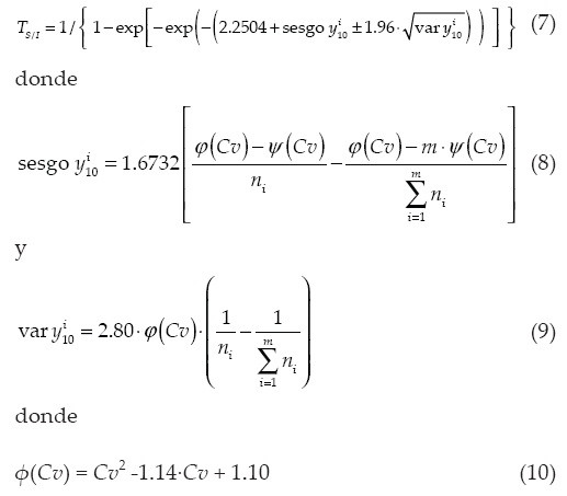 es el estimador de la variable reducida de Gumbel de periodo de retorno 10 años en el sitio i.