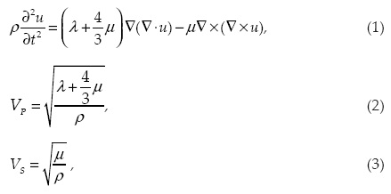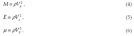 Esta ecuación relaciona las velocidades de propagación de ondas de compresión (VP) y de corte (VS) con los parámetros de Lamé, como se indica en las ecuaciones 2 y 3. Así, las velocidades de propagación asociadas a los diferentes módulos elásticos son la clave para definir información del subsuelo a partir de datos sísmicos. Por su parte, las señales sísmicas contienen información del contraste de propiedades elásticas del subsuelo en forma de tiempos de arribo, variaciones de amplitud y fase.