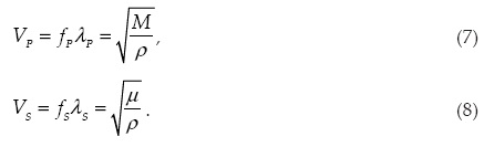 Por otro lado, las velocidades de propagación VP y VS se pueden relacionar con la frecuencia de propagación de la onda (f) y la longitud de onda (λ) correspondientes, por medio de las relaciones siguientes:
