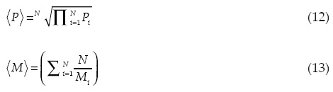 Generalmente, las propiedades volumétricas de la roca, por ejemplo, densidad, porosidad, se escalan mediante el promedio aritmético, mientras que para los módulos elásticos, como los parámetros de Lamé my l, se utiliza el promedio armónico como se indica en las ecuaciones 12 y 13,