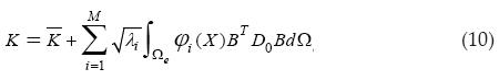 donde D0 es una matriz de elasticidad calculada con un módulo de deformación unitario. Si la expresión 9 se sustituye en la matriz de rigidez (8), ésta queda expresada por una parte determinista
