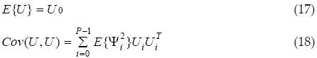 La expresión (17) representa la esperanza matemática de los desplazamientos U y la expresión (18) define la matriz de covarianza (incertidumbre) sobre los desplazamientos en términos de la norma al cuadro