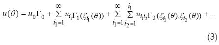 denota el caos homogéneo de orden p y ui p son las coordenadas de la variable u(θ) asociadas a este orden (cero, primero, segundo, etcétera). Se define como caos polinomial al conjunto de polinomios multidimensionales y al espacio que ocupan tales polinomios se le llama caos homogéneo.