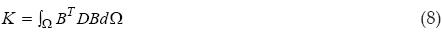 F es un vector de fuerzas nodales y volumétricas; U es un vector de desplazamientos nodales y K corresponde a la matriz de rigidez total, con forma