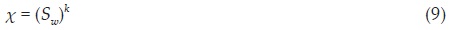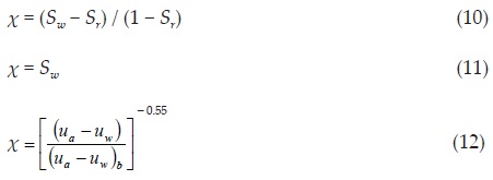 Se puede ver en la figura 7 que los valores de c varían de una ecuación a otra, esto indica que las ecuaciones no son aplicables para todos los casos. Conocidos los valores del parámetro χ, para cada ecuación es posible estimar los valores de los esfuerzos efectivos. Se puede hacer aplicando las siguientes expresiones: