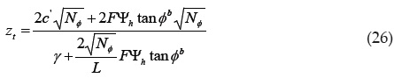 En la figura 16, H representa la altura de una estructura de retención y puede observarse que en la distribución resultante de la presión activa en la parte superior del suelo puede quedar una zona de tensión, cuya profundidad es zt, que puede ser calculada al igualar a cero el esfuerzo total horizontal y la presión del aire ua en la ecuación (25), resultando la ecuación (26).