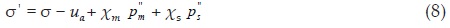 donde χm es parámetro de esfuerzo efectivo para la succión mátrica, hm es la succión mátrica, χs es el parámetro de esfuerzo efectivo para la succión salina y hs es la succión salina. Aitchison (1965) presenta la ecuación (8), similar a la de Richards: