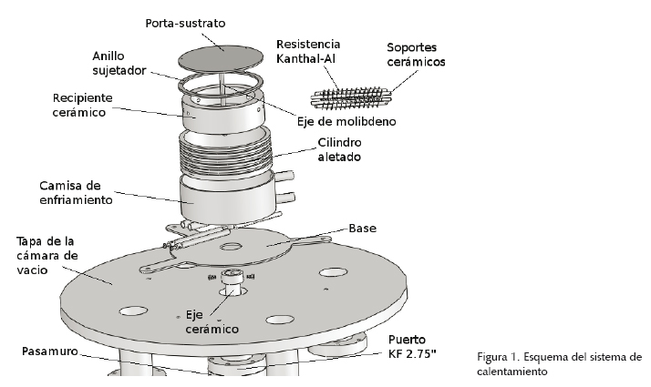 Este sistema de tratamientos térmicos in-situ es capaz de proporcionar energía térmica al sustrato durante el proceso de crecimiento de las películas delgadas de BTO, propiciando de esta manera la cristalización del material en el proceso mismo de crecimiento. Los detalles del diseño y construcción de este sistema ya fueron reportados (Márquez et al., 2010).