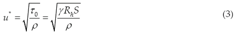 τ0 = esfuerzo de corte en el fondo (Pa)