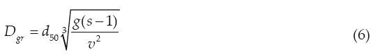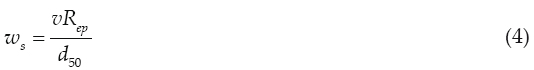 donde v es la viscosidad cinemática del agua y d50 es el diámetro medio de los sedimentos El número de Reynolds de la partícula se calcula con la fórmula de Hallermeier (1981).