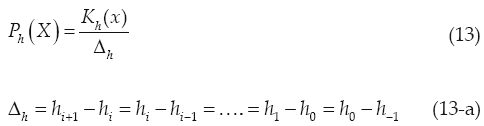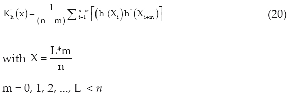 The evaluation of the function of correlation of second order Kh"(x), in particular for a discrete calculation (discrete variables) (Kawatani et al., 1993) with help of a numerical calculation, can be determined by the following expression: