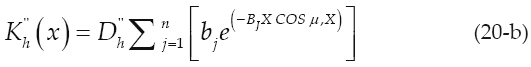 For the approximation of the functions of correlation Kh"(x), one can use in exponential form one function cosine.