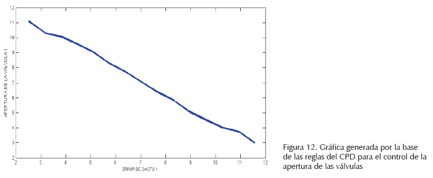 Donde e, es el error de gasto que demanda la rama paralela y O es la apertura de la válvula. La gráfica generada por la base de estas reglas se muestra en la figura 12.