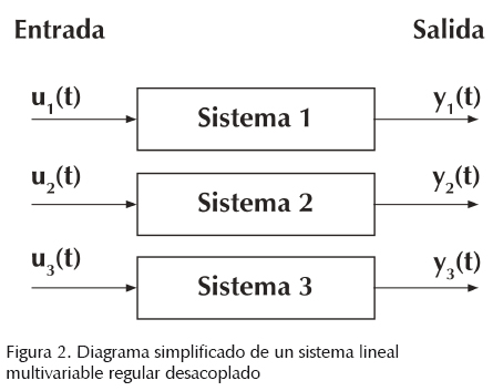 Cuando el acoplamiento en un sistema no permite lograr los objetivos de control, una alternativa es que el sistema MIMO se pueda transformar en varios sistemas SISO (simple input simple output) donde sólo una entrada afecta una sola salida, a lo cual se le conoce como desacoplamiento regular (figura 2). Esta estructura es deseable en un gran número de aplicaciones donde la interacción entre las variables controladas y manipuladas afecta el control del sistema, tal como en los sistemas de calefacción, ventilación y aire acondicionado (o HVAC), procesos de cristalización de penicilina, columnas de destilación, entre otros.