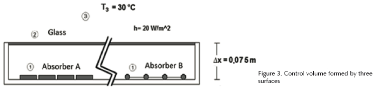 As shown in Figure 3 considering that there is no absorption of solar energy in the glass, the radiosity for the absorber is: J1 = Eb1 and the energy supplied to surface 1 is