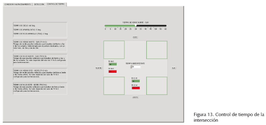 En la figura 13, se especifican las características temporales del sistema, como el tiempo total del ciclo de la intersección y los tiempos máximos y mínimos de la misma, teniendo en cuenta la norma alemana DIN VDE 0832.