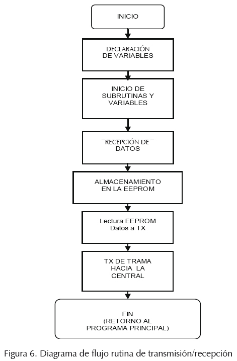 La rutina de recepción/transmisión, como su nombre lo indica, recibe las tramas provenientes de la central de monitoreo y transmite los reportes hacia la misma usando el protocolo TCP/IP (figura 6). Por ejemplo, si una falla se soluciona en un controlador de tráfico, a través de esta rutina se informa a la central para que suspendan las rutinas de seguridad y se inicie, lo antes posible, el funcionamiento normal de los semáforos de la intersección.