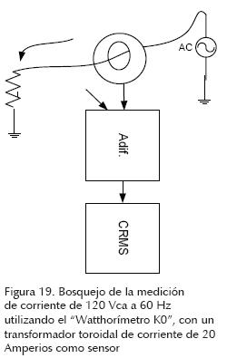 Para el estudio en particular, las mediciones de corriente se realizan con un instrumento desarrollado, llamado: "Watthorímetro K0" (Núñez, 2010), el cual mide la potencia instantánea y la energía utilizando sólo un transformador toroidal de corriente.