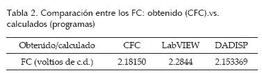 Se realiza una comparación entre el FC obtenido por el CFC y los calculados por los programas LabVIEW (en tiempo real) y DADISP (en posanálisis).