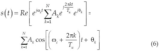 Al utilizar N subportadoras ortogonales en un sistema OFDM cualquiera, estas estarán separadas en frecuencia justamente por el valor correspondiente al inverso del tiempo útil del símbolo OFDM (Tu) y durante este periodo se transmitirán N símbolos independientes codificados por alguna de las modulaciones en cuadratura I/Q conocidas como: QPSK, 16-QAM, 64-QAM, etcétera. Entonces la señal modulada puede escribirse mediante la siguiente expresión: